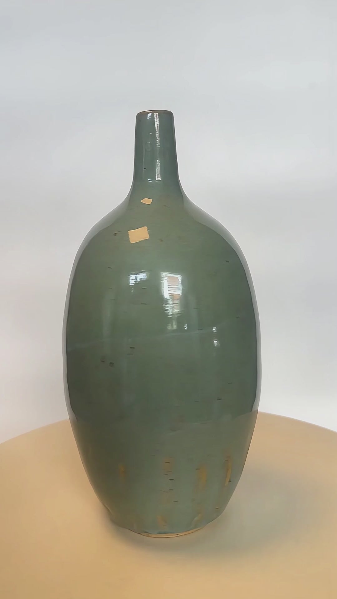 Stoneware çamurdan tornada şekillendirilmiş bu el yapımı şişe formundaki vazo, kendi hazırladığım sırla kaplandı. Formunun yalınlığı, yüzeydeki dalgalı oyma detaylarla birleşerek hem modern hem de doğal bir görünüm sunuyor. Minimal tasarımıyla tek başına şık bir dekoratif obje olurken, ince boğaz yapısı sayesinde birkaç dal çiçek veya kuru bitkiyle de tamamlanabilir.