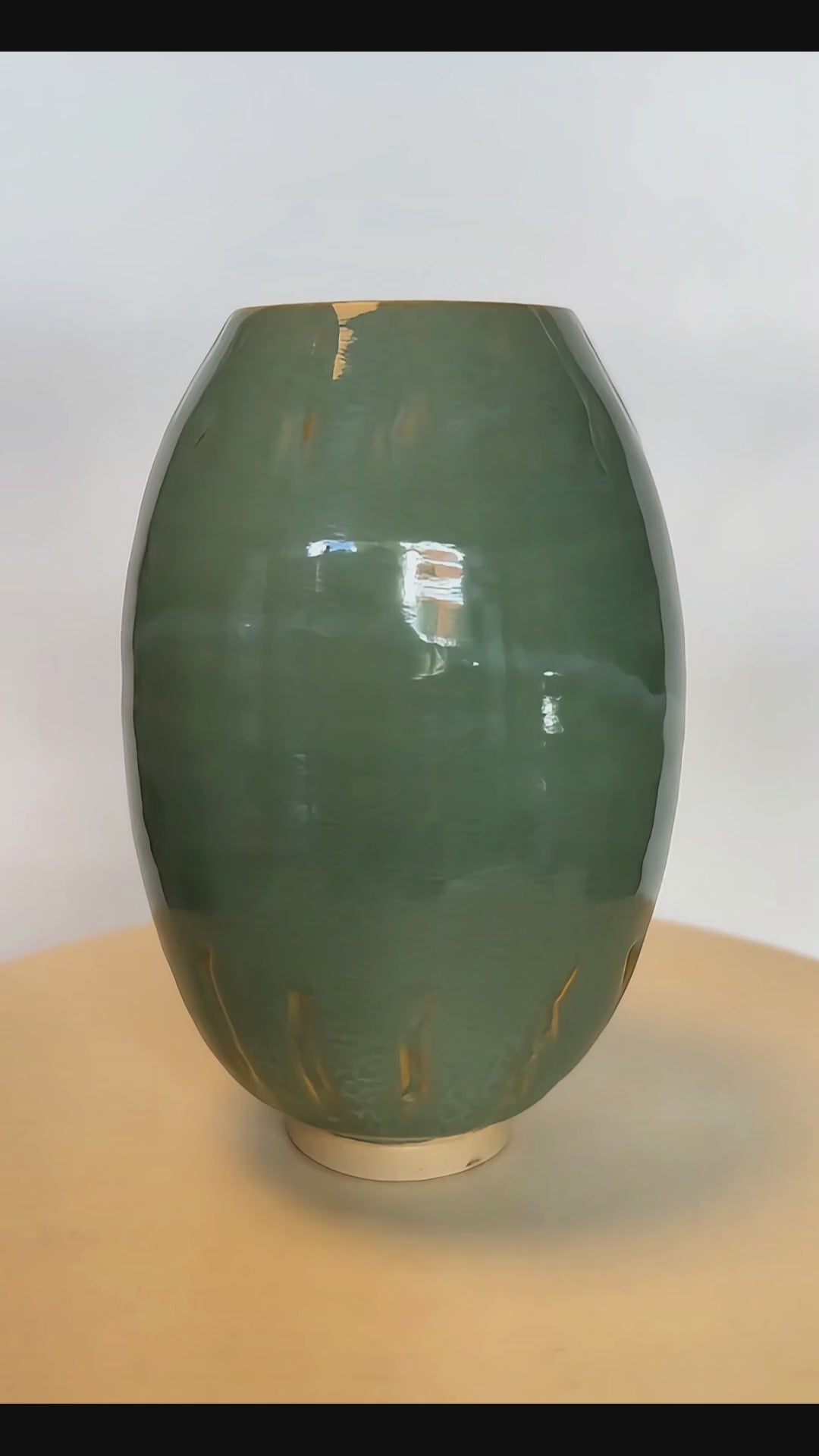Stoneware çamurdan tornada şekillendirilmiş bu el yapımı vazo, kendi hazırladığım sırla kaplandı. Yüzeyindeki dalga benzeri hareketli doku, sırın akışkanlığıyla birleşerek doğal ve organik bir görünüm kazandırıyor. Zarif formu ve derin yeşil tonuyla hem tek başına dekoratif bir obje olarak hem de kuru/canlı çiçek aranjmanlarıyla kullanılmaya uygun.